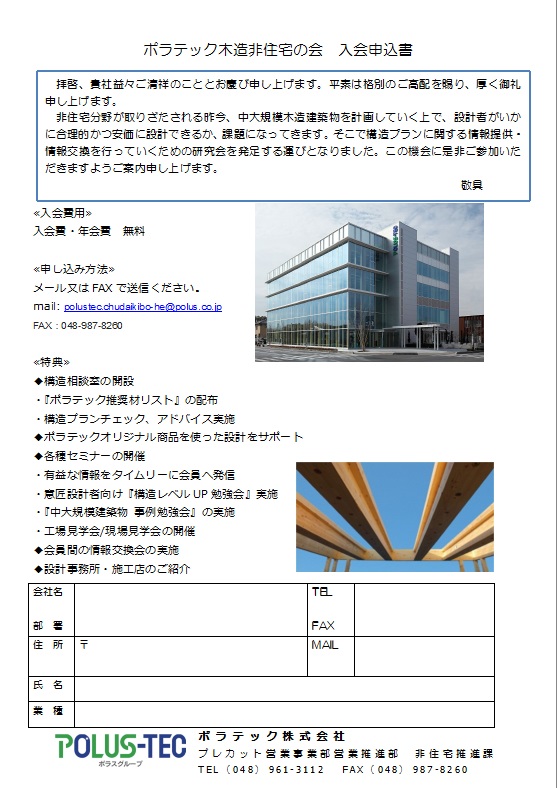 ポラテック木造非住宅の会 申込書