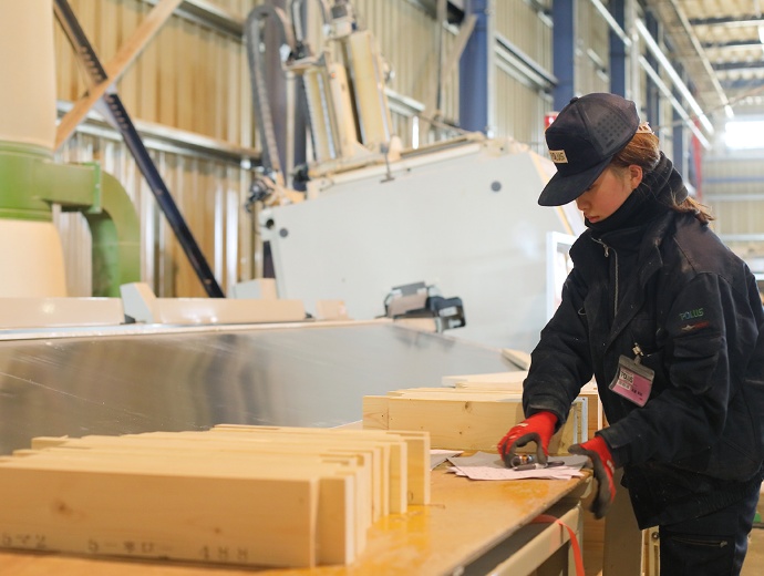 - 弊社の強みは全国的に展開している点であると思います。他のプレカット会社ではあまりない形態であり、加工数日本一位の要因であると思います。(営業職)
