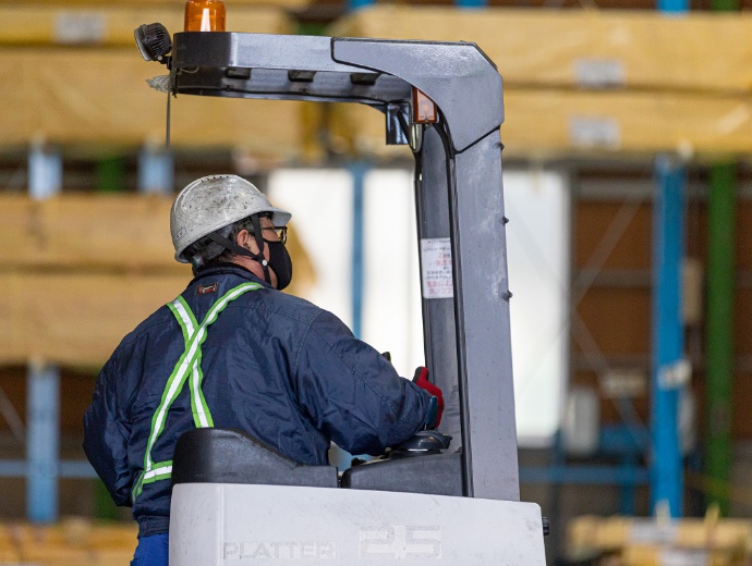 - 自分よりも大きく重い木材を運んだり、積み込んだりする作業はとても大変です。(生産管理職)
